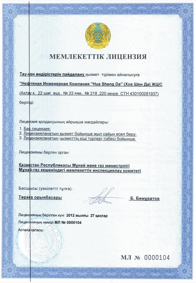 Copyright © ТОО Нефтяная Инженерная Компания «Хоа Шен Да » All Rights Reserved